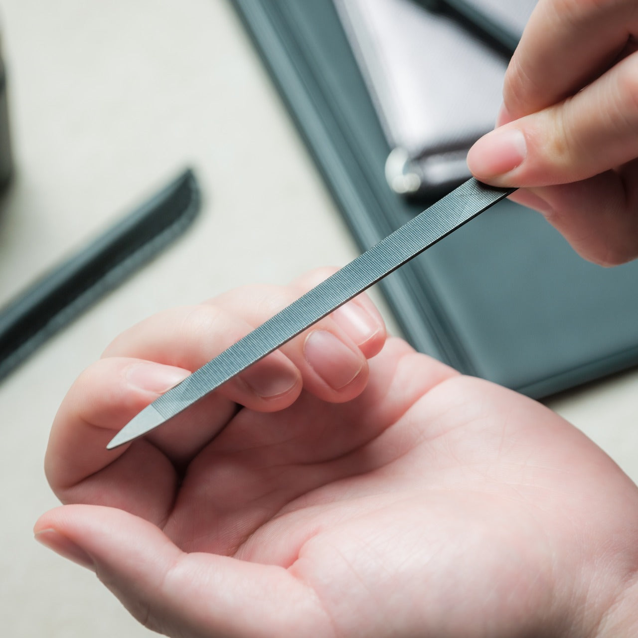 Called the Legacy Precision Nail File, this compact file was designed by Yoshida Yasuri in Japan using meticulous craftsmanship. The file is created via a complex three-stage sharpening process, ensuring it isn’t dull, nor does it feature any sharp edges like conventional factory-made nail files.