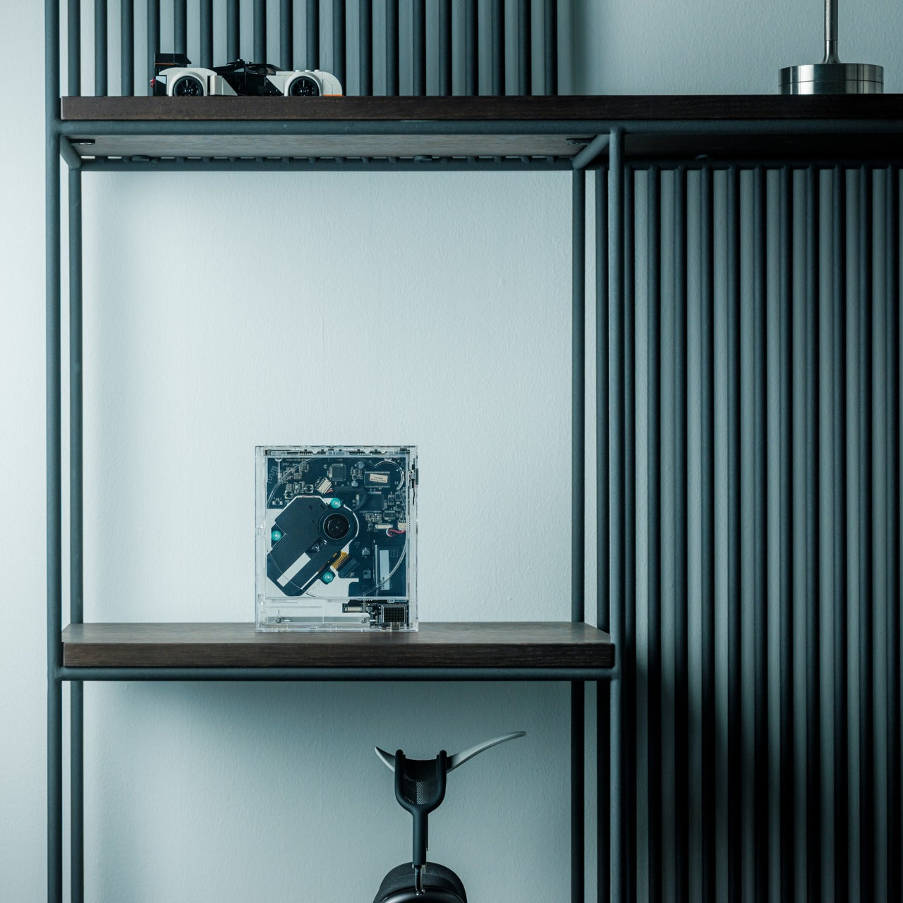 This player understands that music consumption has become too disposable, too disconnected from the artistic vision behind each release. By making the CD and its cover art visible elements of the listening experience, the ClearFrame encourages deeper engagement with music. The exposed black circuitry turns technology into art, creating visual interest even when silent.